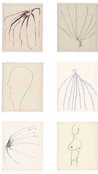 [Imagen: bocetos de Louise Bourgeois sobre su proyecto de la Araña, inspirado en su madre.]