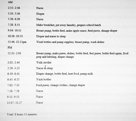 Como ejercicio propongo registrar 24 horas de tu vida, desde que te levantas hasta que te acuestas. Escribe en una hoja las horas y breves detalles de cuando pintas, maternas, limpias, cuidas, creas...
